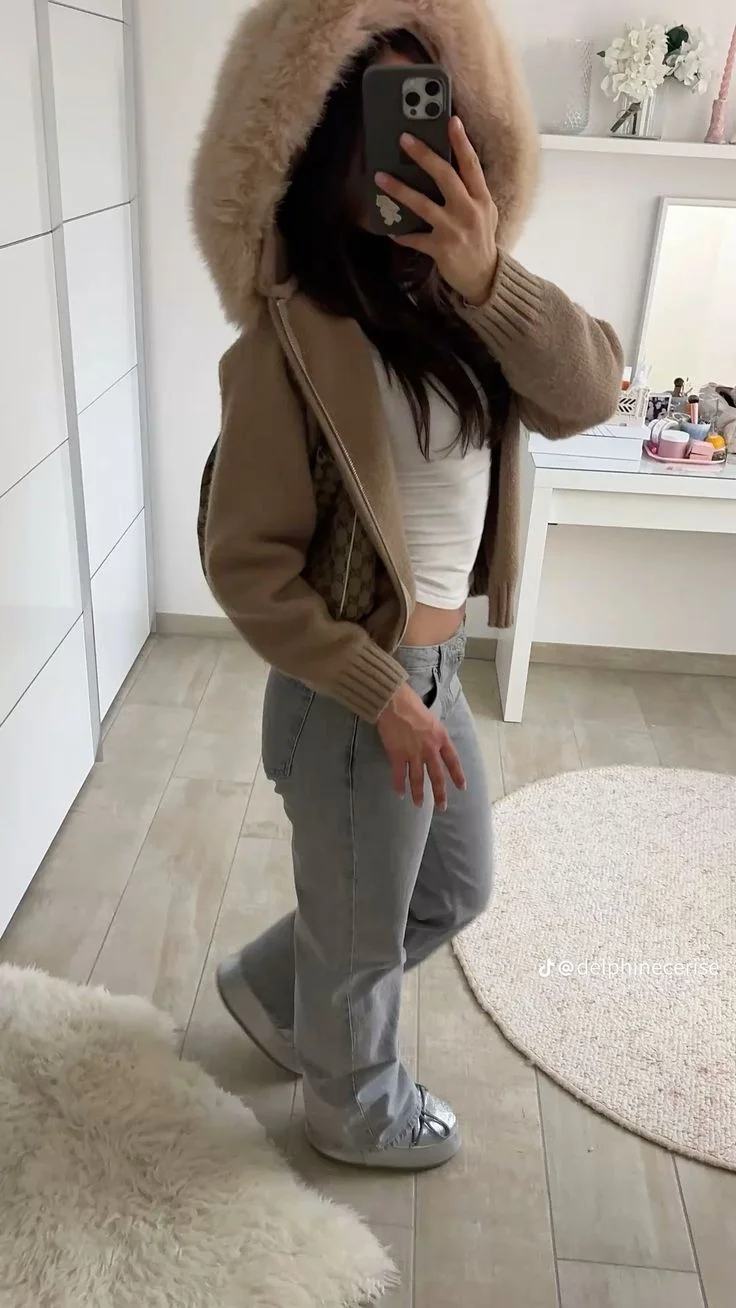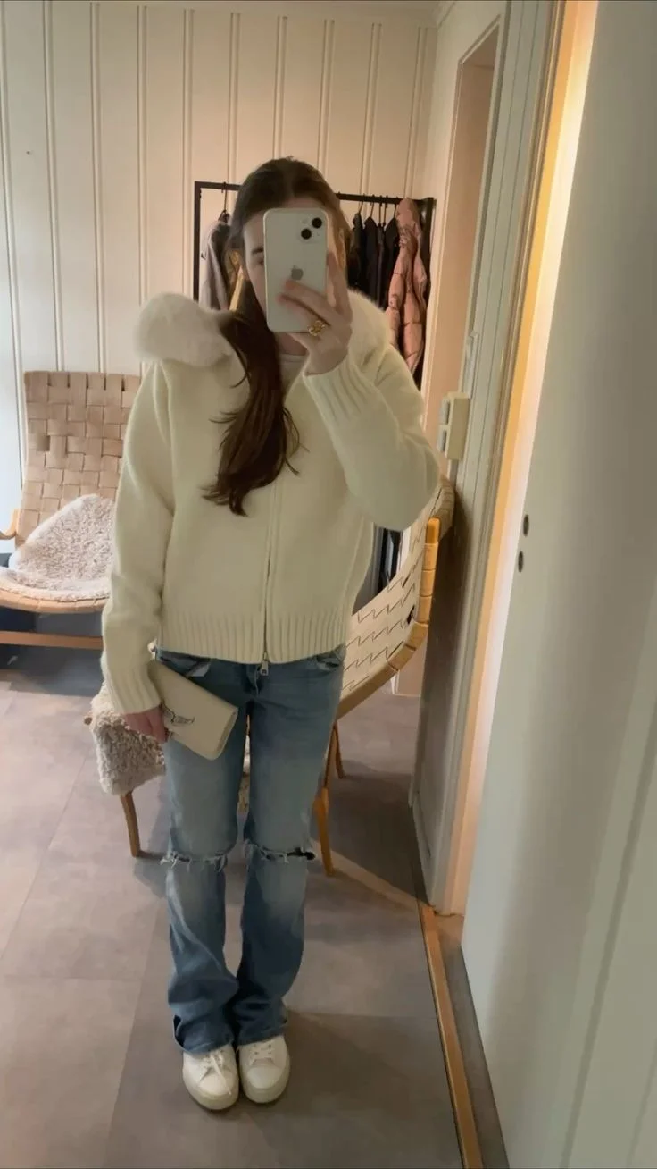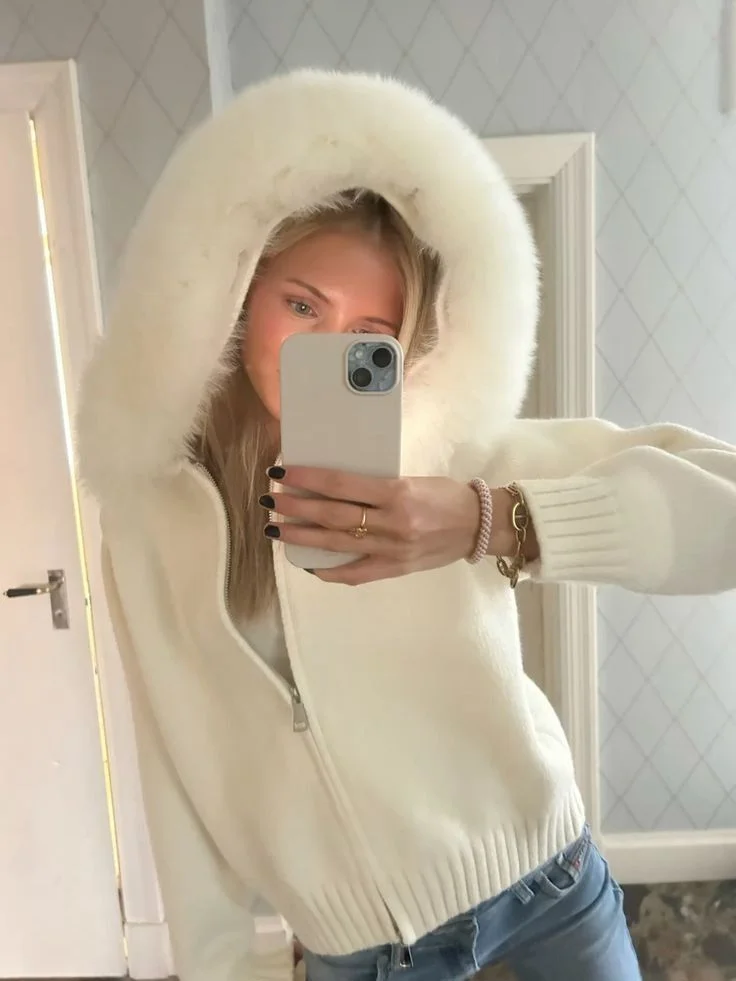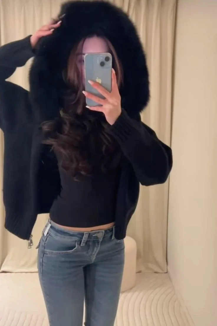 Setze ein stylisches Statement mit der Women’s Chic Fur Collar Cropped Knit Jacket! Diese kurz geschnittene Strickjacke vereint komfortablen Knit-Look mit einem eleganten Fellkragen und einer praktischen Kapuze, perfekt für die kühleren Herbsttage. Der Reißverschluss sorgt für einfaches An- und Ausziehen, während das einfarbige Design vielseitig kombinierbar ist. Ideal für casual Streetwear, High Street Looks oder den Alltag, bietet diese Jacke Komfort, Wärme und trendigen Stil in einem.